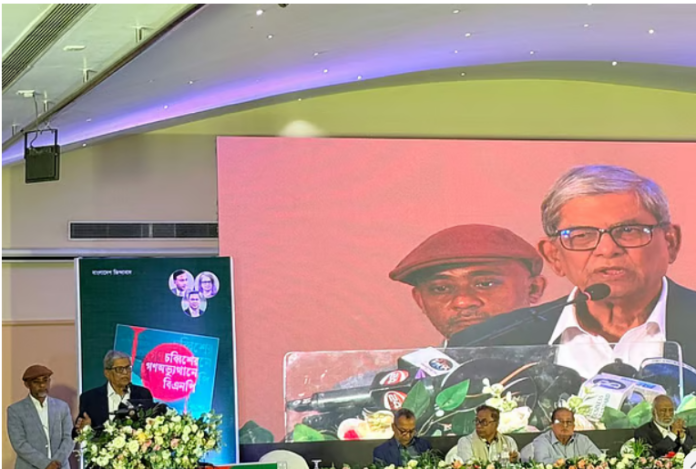 আজ বুধবার দুপুরে রাজধানীর গুলশানের একটি হোটেলে এক অনুষ্ঠানে মির্জা ফখরুল এসব কথা বলেন। ‘চব্বিশের গণ-অভ্যুত্থানে বিএনপি’ বইয়ের মোড়ক উন্মোচন ও ডকুমেন্টারি প্রদর্শন শীর্ষক এই অনুষ্ঠানের আয়োজক বিএনপি ও ন্যাশনালিস্ট রিসার্চ সেন্টার। অনুষ্ঠানে প্রধান অতিথির বক্তব্য দেন মির্জা ফখরুল। অনুষ্ঠানে ২০২৪ সালের জুলাই-আগস্টের গণ-অভ্যুত্থান নিয়ে একটি তথ্যচিত্র প্রদর্শন করা হয়।