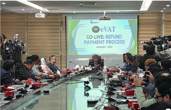 আজ বুধবার ঢাকার রাজস্ব ভবনে অনলাইন ভ্যাট রিফান্ড–ব্যবস্থার উদ্বোধন করেন এনবিআর চেয়ারম্যান আবদুর রহমান খান। উদ্বোধনের অংশ হিসেবে ঢাকার তিনজন করদাতার ব্যাংক হিসাবে সরাসরি ৪৫ লাখ ৩৫ হাজার টাকা ভ্যাট রিফান্ড পাঠানো হয়। অনুষ্ঠানে করদাতাদের প্রতিনিধি ও ব্যবসায়ীরা উপস্থিত ছিলেন।