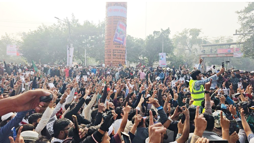 ওসমান হাদির খুনিদের গ্রেপ্তার ও বিচার দাবিতে ধারাবাহিক কর্মসূচি চালিয়ে আসছে ইনকিলাব মঞ্চ। পূর্বঘোষিত কর্মসূচির অংশ হিসেবে আজ তারা শাহবাগ মোড় অবরোধ করে।
