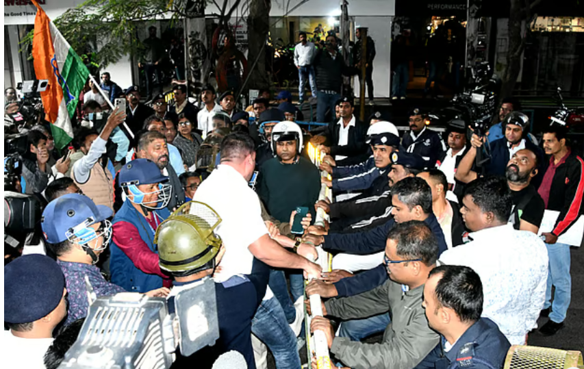 ভারতের জাতীয় কংগ্রেসের বিক্ষোভ। কলকাতায় বাংলাদেশ উপহাইকমিশন এলাকায়, ২২ ডিসেম্বর ২০২৫