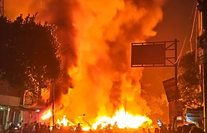 খাগড়াছড়ির গুইমারা উপজেলার জালিয়াপাড়া বাজারে আগুন। গতকাল দিবাগত রাত ২টার দিকেছবি: বিজিবির ফেসবুক পেজ থেকে নেওয়া।