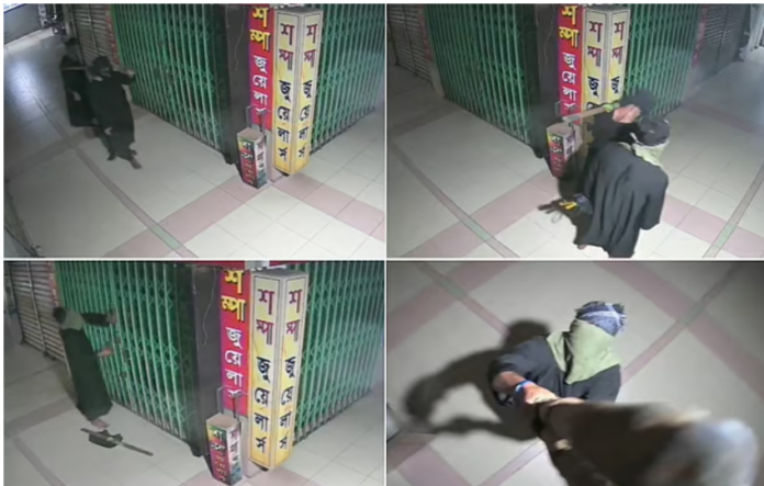 বোরকা পরা অন্যজনও পরে এদিক-ওদিক তাকিয়ে দেখেন। তাঁরা শম্পা জুয়েলার্সের কলাপসিবল গেটের অবস্থা বোঝার চেষ্টা করেন। আশপাশে ঘোরেন।
