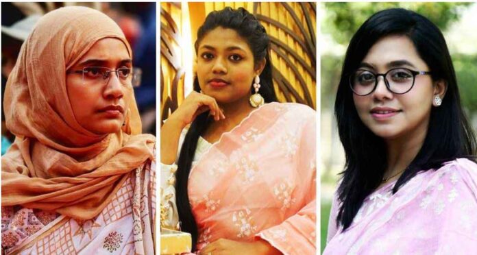 এনসিপির জ্যেষ্ঠ যুগ্ম আহ্বায়ক সামান্তা শারমিন, যুগ্ম সদস্য সচিব নুসরাত তাবাসসুম ও যুগ্ম সদস্য সচিব ডা. মাহমুদা মিতু।