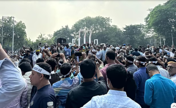 তিন দফা দাবিতে শহীদ মিনারে শিক্ষকদের অবস্থান কর্মসূচি চলছে
