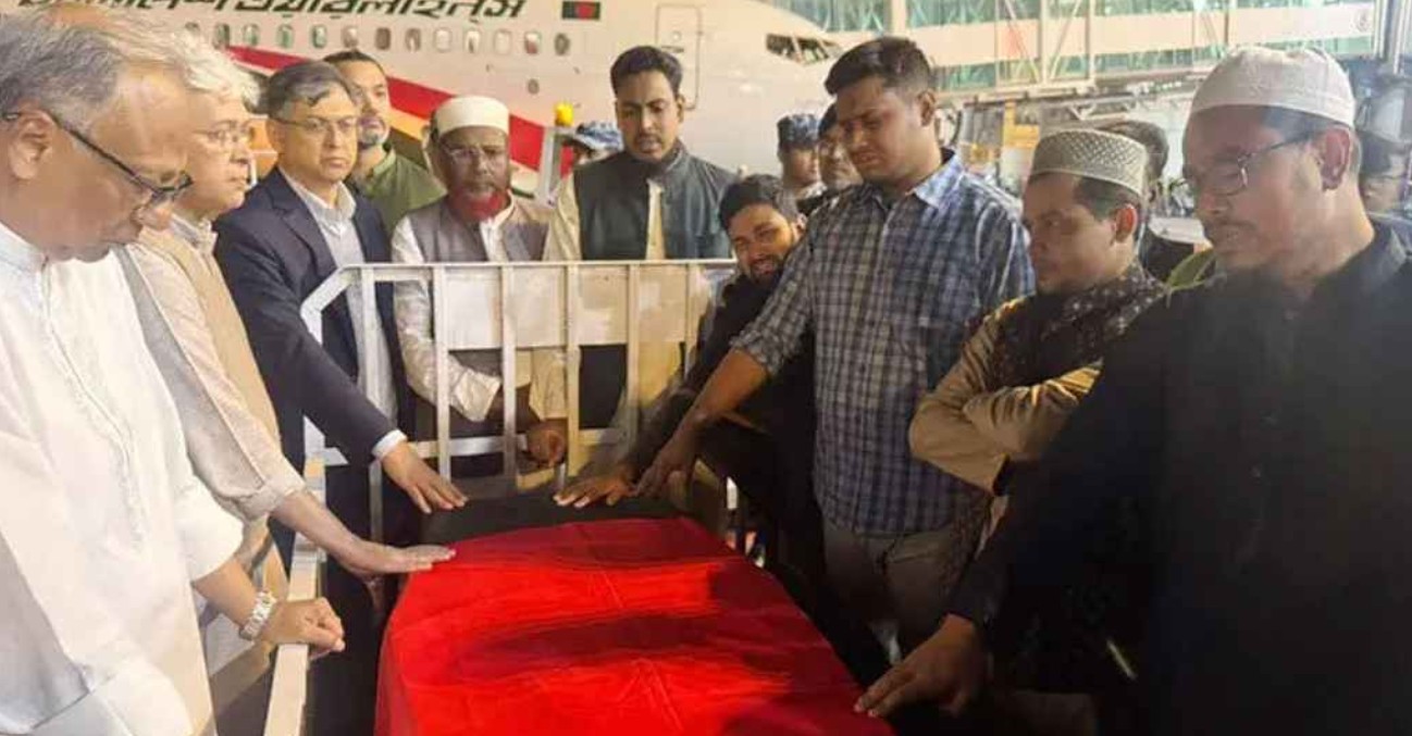 ইনকিলাব মঞ্চের মুখপাত্র শহীদ ওসমান হাদির মরদেহ শুক্রবার (১৯ ডিসেম্বর) সন্ধ্যা ৬টায় হযরত শাহজালাল আন্তর্জাতিক বিমানবন্দরে পৌঁছেছে। তাকে বহনকারী বিমানটি নির্ধারিত সময়মতো অবতরণ করে।