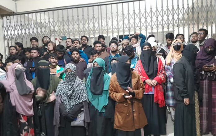 বিশ্ববিদ্যালয়ের কয়েকজন শিক্ষার্থী বলেন, ইসির বিজ্ঞপ্তির বিষয়ে জানাজানি হলে গতকাল দিবাগত রাত ১০টার দিকে আন্দোলন শুরু করেন তাঁরা।
