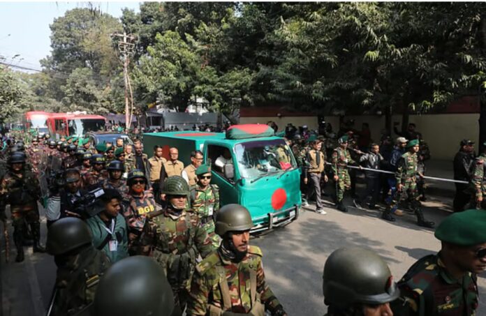 পতাকায় মোড়ানো গাড়িতে মানিক মিয়া অ্যাভিনিউয়ে নেওয়া হচ্ছে খালেদা জিয়ার মরদেহ