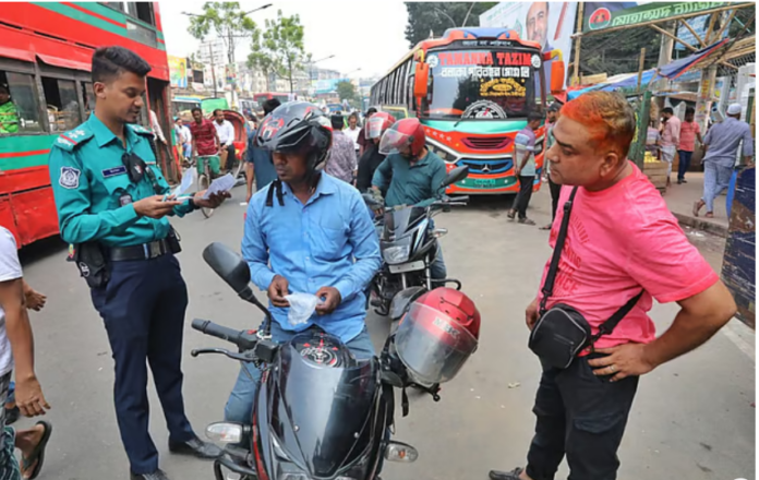 গুলির ঘটনার পর রাজধানীর প্রবেশপথে তল্লাশি চালায় পুলিশ। বাবুবাজার এলাকা, ১০ নভেম্বর