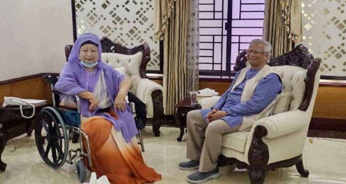 বিএনপি চেয়ারপারসন খালেদা জিয়া প্রধান উপদেষ্টাকে ধন্যবাদ জানান। তিনি প্রধান উপদেষ্টার সহধর্মিণী আফরোজী ইউনূসের শারীরিক অবস্থার খোঁজ নেন এবং শুভকামনা জানান।