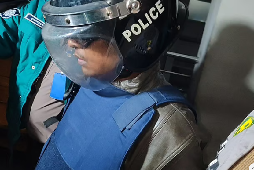 শুনানি শেষে হাজতখানায় নেওয়ার সময় ছবিটি তোলা। ২৪ ডিসেম্বর