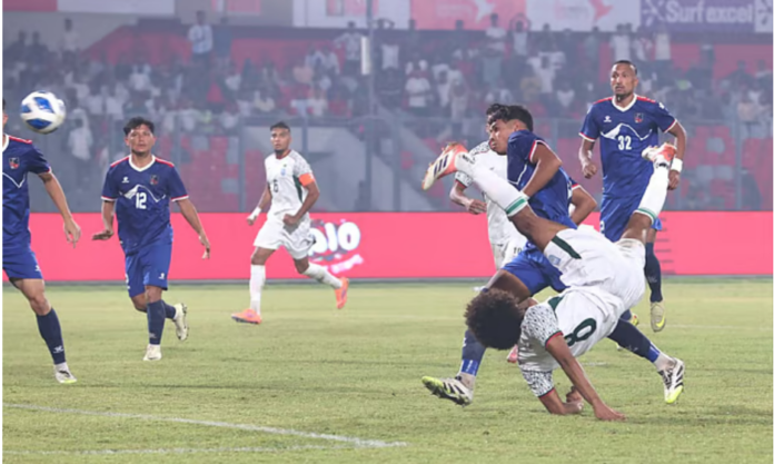 বাংলাদেশ–নেপাল: চার মিনিটের মধ্যে হামজার জোড়া গোল, এগিয়ে বাংলাদেশ