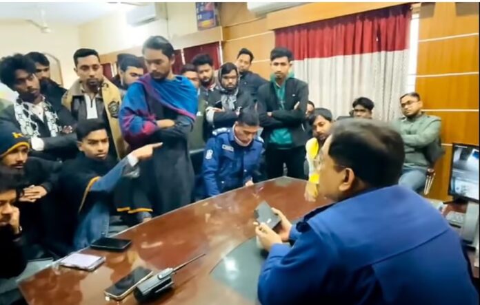 পুলিশ সূত্রে জানা গেছে, শায়েস্তাগঞ্জ সদর ইউনিয়ন ছাত্রলীগের সহসভাপতি এনামুল হাসানকে গত বৃহস্পতিবার মধ্যরাতে শায়েস্তাগঞ্জ থানার পুলিশ আটক করে থানায় নিয়ে আসে। তাঁর বিরুদ্ধে অভিযোগ, তিনি নিষিদ্ধঘোষিত ছাত্রলীগের রাজনীতির সঙ্গে সম্পৃক্ত থেকে কর্মকাণ্ড পরিচালনা করে আসছিলেন। এনামুলকে আটকের পর বৈষম্যবিরোধী ছাত্র আন্দোলনের জেলার নেতা-কর্মীরা তাঁর মুক্তির দাবিতে গতকাল দুপুরে থানা ঘেরাও করেন। এ সময় বৈষম্যবিরোধী ছাত্র আন্দোলন ও ছাত্র অধিকার আন্দোলনের সাধারণ সম্পাদক মাহদী হাসানের নেতৃত্বে একদল নেতা-কর্মী ওসির কক্ষে অবস্থান নেন। তাঁরা দাবি করেন, এনামুল হাসান একসময় ছাত্রলীগের রাজনীতির সঙ্গে জড়িত থাকলেও পরে তিনি জুলাই আন্দোলনে জড়িত হন। তাঁরা এনামুলকে ছেড়ে দেওয়ার দাবি করেন।