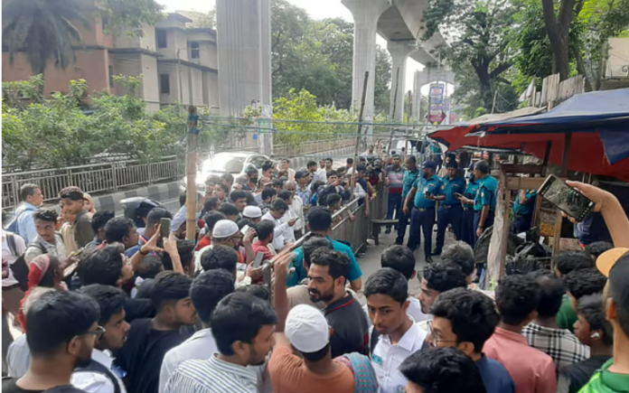 মেট্রোরেল চলাচল আজ রোববার দুপুরে বন্ধ হয়ে যায়। কারওয়ান বাজার স্টেশন