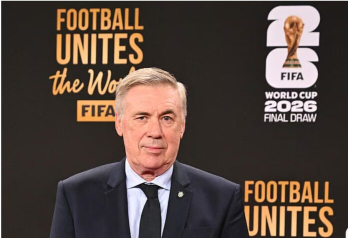 ওয়াশিংটন ডিসিতে গতকাল রাতে বিশ্বকাপের ড্র অনুষ্ঠানে ব্রাজিল কোচ কার্লো আনচেলত্তি, এএফপি