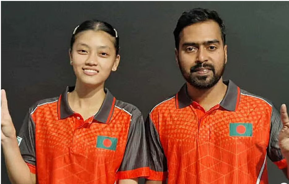 জাবেদ আহমেদ (ডানে) ও খই খই মারমা, ছবি: বাংলাদেশ টেবিল টেনিস ফেডারেশন