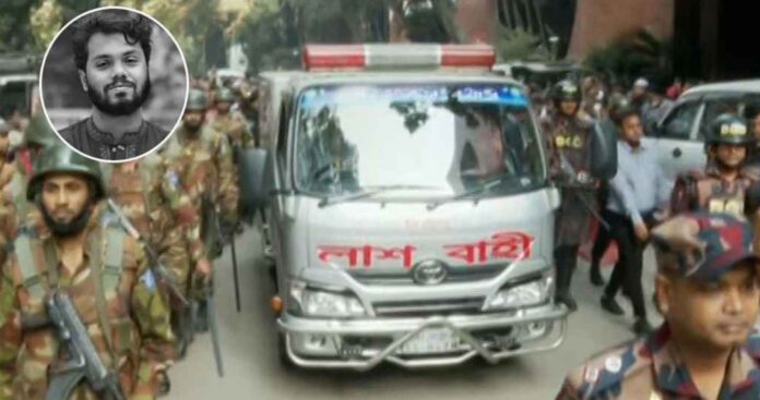 শনিবার (২০ ডিসেম্বর) সকাল ৯টা ৪০ মিনিটের দিকে সেনাবাহিনী, বিজিবি ও পুলিশসহ আইনশৃঙ্খলাবাহিনীর কঠোর নিরাপত্তার মধ্য দিয়ে তার মরদেহ জাতীয় হৃদরোগ ইনস্টিটিউটের হিমঘর থেকে মর্গে নেওয়া হয়। এ সময় হাদির স্বজন, সহযোদ্ধা ও সহকর্মীরা সঙ্গে ছিলেন।
