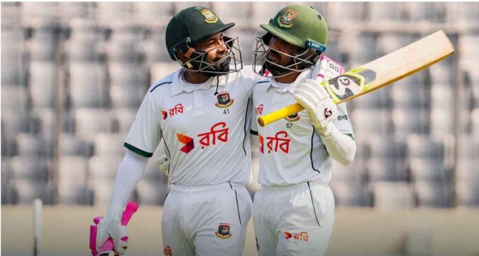 এদিকে সাদমানের বিদায়ের পর ক্রিজে নেমে থিতু হতে পারেননি অধিনায়ক নাজমুল হোসেন শান্তও। ৫ বলে ১ রান করে জর্ডান নেইলের বলে ক্যাচ দিয়ে ফেরেন তিনি। প্রথম ইনিংসেও ব্যর্থ ছিলেন টাইগার অধিনায়ক। ১১ বলে করেছিলেন ৮ রান।