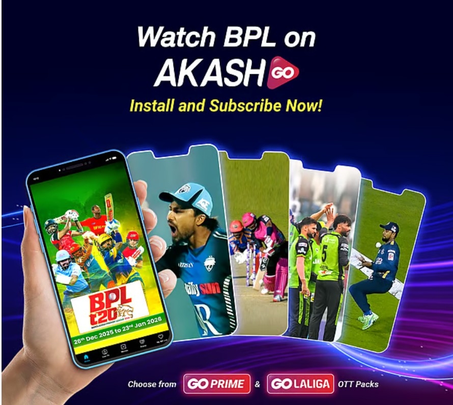 আকাশ ডিজিটাল টিভি নিয়ে এসেছে ‘আকাশ গো ওটিটি অ্যাপ’। এটিতে বিপিএল ২০২৬ এবং চলমান স্প্যানিশ লা লিগার ম্যাচগুলোর লাইভ স্ট্রিমিংসহ হটস্টার স্পেশালস জিওসিনেমা, জি এবং অন্যান্য জনপ্রিয় প্ল্যাটফর্মের ওয়েব সিরিজের মতো প্রিমিয়াম কনটেন্টগুলো দেখা যাচ্ছে। অ্যাপটির সাবস্ক্রিপশন এখন সবার জন্য উন্মুক্ত।