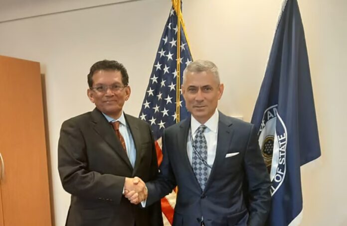 যুক্তরাষ্ট্রের ওয়াশিংটন সফররত জাতীয় নিরাপত্তা উপদেষ্টা খলিলুর রহমানের সঙ্গে আলোচনা করেন যুক্তরাষ্ট্রের রাজনীতিবিষয়ক আন্ডার সেক্রেটারি অ্যালিসন হুকার, ছবি: ওয়াশিংটনে বাংলাদেশ দূতাবাসের সৌজন্যে