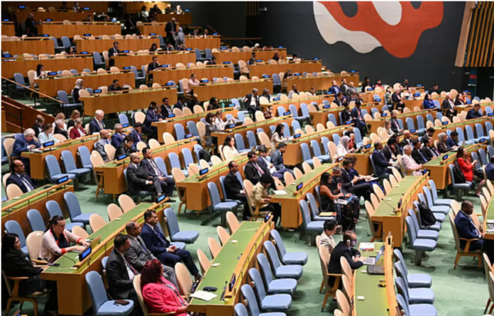 জাতিসংঘের সদর দপ্তরে মিয়ানমারের রোহিঙ্গা জনগোষ্ঠী ও অন্য সংখ্যালঘুদের নিয়ে আয়োজিত উচ্চপর্যায়ের সম্মেলনে উপস্থিত বিভিন্ন দেশ ও সংস্থার প্রতিনিধিরা। স্থানীয় সময় গতকাল মঙ্গলবার সকালে যুক্তরাষ্ট্রের নিউইয়র্কেছবি: প্রধান উপদেষ্টার ফেসবুক