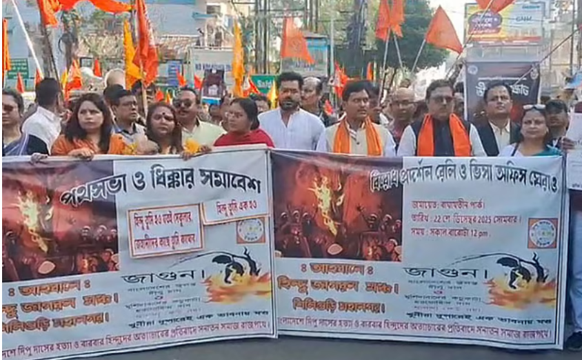 কূটনৈতিক সূত্রগুলো জানিয়েছে, বাংলাদেশে হিন্দু সম্প্রদায়ের ওপর অত্যাচারের ঘটনার প্রতিবাদে শিলিগুড়ির বাঘা যতীন পার্কে জমায়েত হন বিএইচপি, হিন্দু জাগরণ মঞ্চ, শিলিগুড়ি মহানগর সংগঠনের প্রায় শ তিনেক সদস্য। এরপর তাঁরা বিক্ষোভ মিছিল নিয়ে বাংলাদেশের ভিসা অফিস ঘেরাও করেন। বিক্ষোভের সময় বাংলাদেশে সংখ্যালঘু হিন্দুদের ওপর নির্যাতন বন্ধ, দীপু দাসের হত্যার বিচার ও দোষী ব্যক্তিদের শাস্তির দাবি জানান।