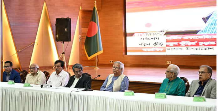 রাজধানীর ফরেন সার্ভিস একাডেমিতে বুধবার সন্ধ্যায় প্রধান উপদেষ্টা অধ্যাপক মুহাম্মদ ইউনূসের সভাপতিত্বে রাজনৈতিক দলগুলোর সঙ্গে জাতীয় ঐকমত্য কমিশনের বৈঠক হয়, ছবি: প্রধান উপদেষ্টার ফেসবুক পেজ থেকে নেওয়া