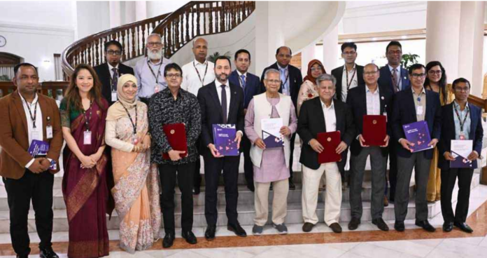 এ কাজে উপস্থিত ছিলেন প্রধান উপদেষ্টার আন্তর্জাতিক বিষয়ক বিশেষ দূত লুৎফে সিদ্দিকী, প্রধান উপদেষ্টার কার্যালয়ের সচিব মো. মাহমুদুল হোসাইন খান, শ্রম ও কর্মসংস্থান মন্ত্রণালয়ের সচিব ড. মো. সানোয়ার জাহান ভূঁইয়া এবং বাংলাদেশে আইএলও’র কান্ট্রি ডিরেক্টর ম্যাক্স টুনোনসহ সংশ্লিষ্ট কর্মকর্তারা।