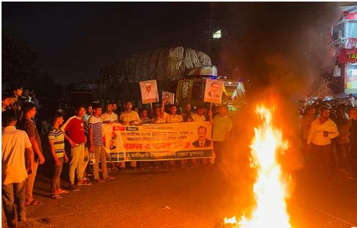 বিএনপি'র সাবেক কেন্দ্রীয় যুগ্ম মহাসচিব আসলাম চৌধুরীর অনুসারীরা মহাসড়কের বিভিন্ন স্থানে টায়ারে আগুন জ্বালিয়ে ঢাকা চট্টগ্রাম মহাসড়ক অবরোধ করেন। গতকাল সোমবার রাত ৯টার দিকে ছবিটি চট্টগ্রামের সীতাকুণ্ডের ভাটিয়ারী শহীদ মিনার এলাকায়