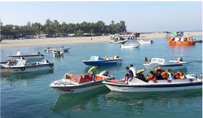 সেন্ট মার্টিন দ্বীপের পূর্ব প্রান্তে যাত্রীবাহী কয়েকটি স্পিডবোট। সম্প্রতি তোলা