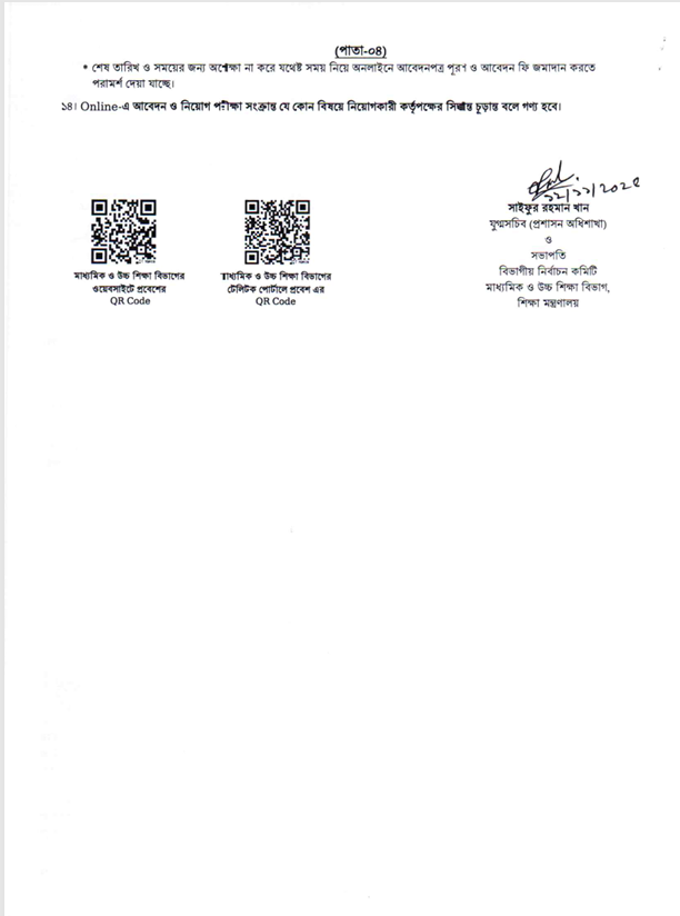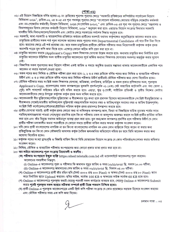 ২. সব শূন্য পদের নিয়োগ পরীক্ষা একই তারিখ ও সময়ে অনুষ্ঠিত হওয়ার সম্ভাবনা থাকায় আবেদনকারীকে একাধিক পদে আবেদন না করার পরামর্শ দেওয়া হলো।